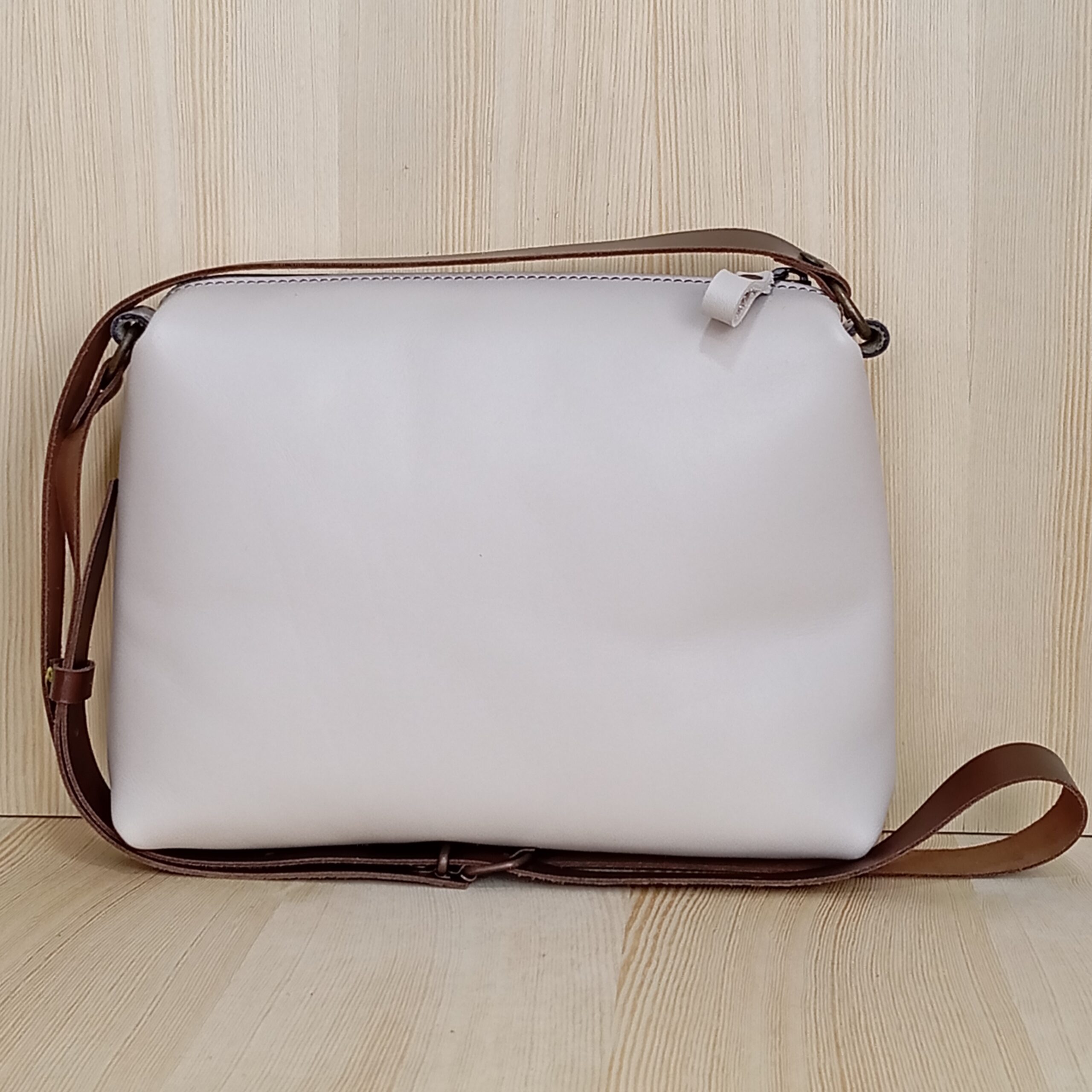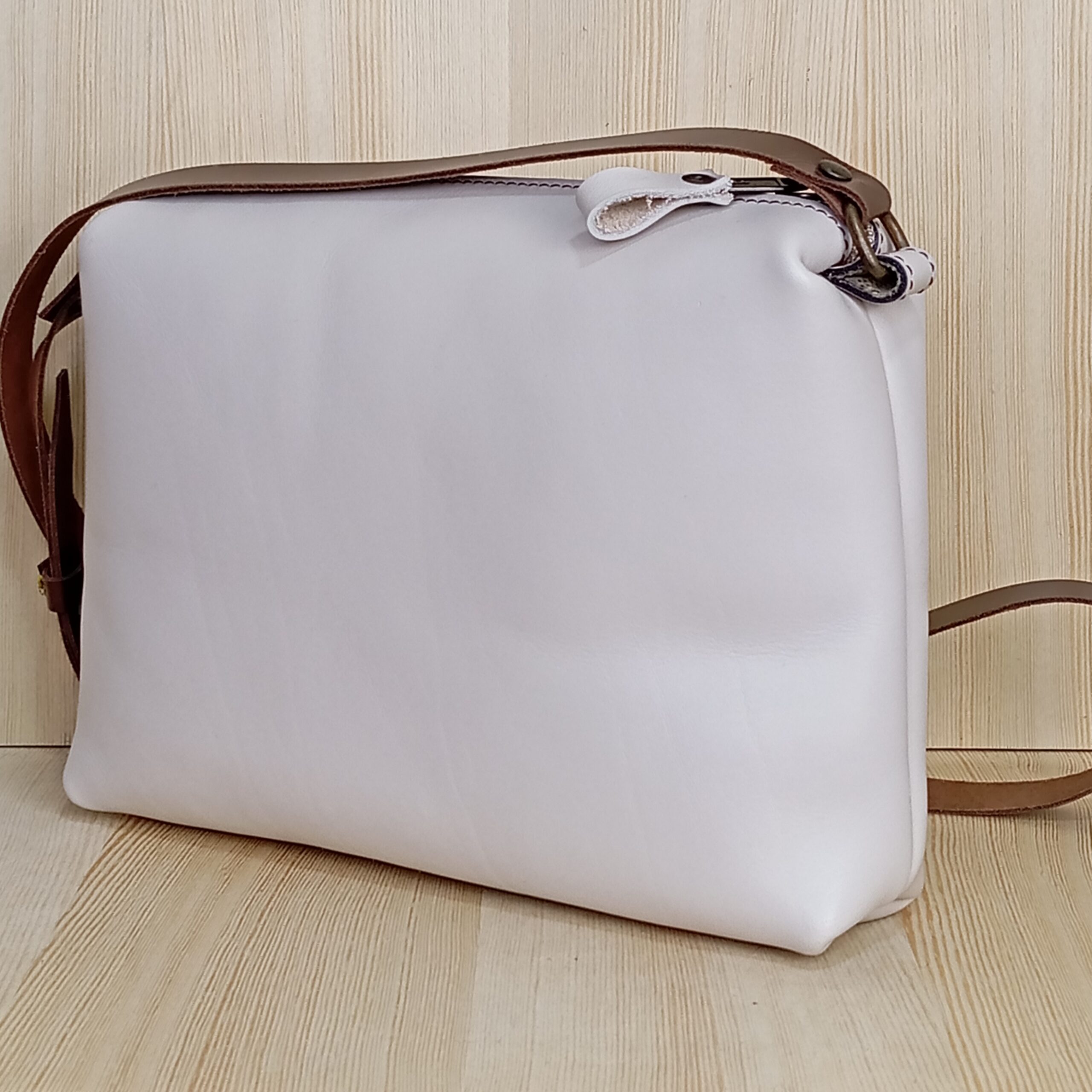 Descripción: Bolso bandolera  rectangular en piel color blanco roto