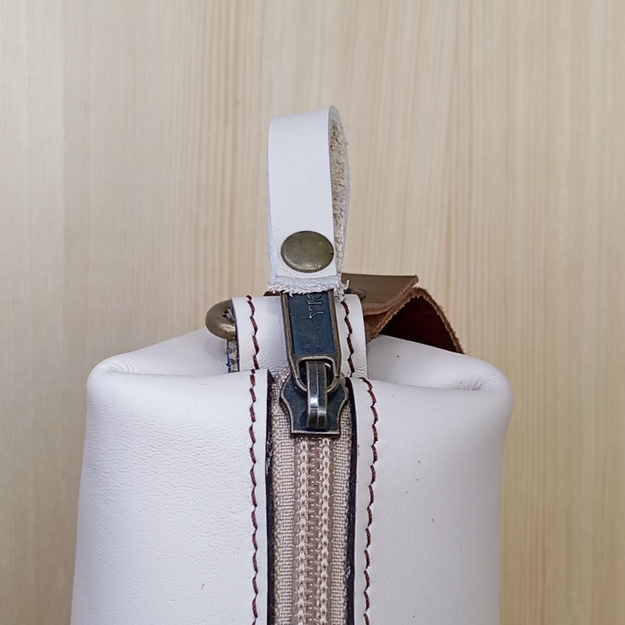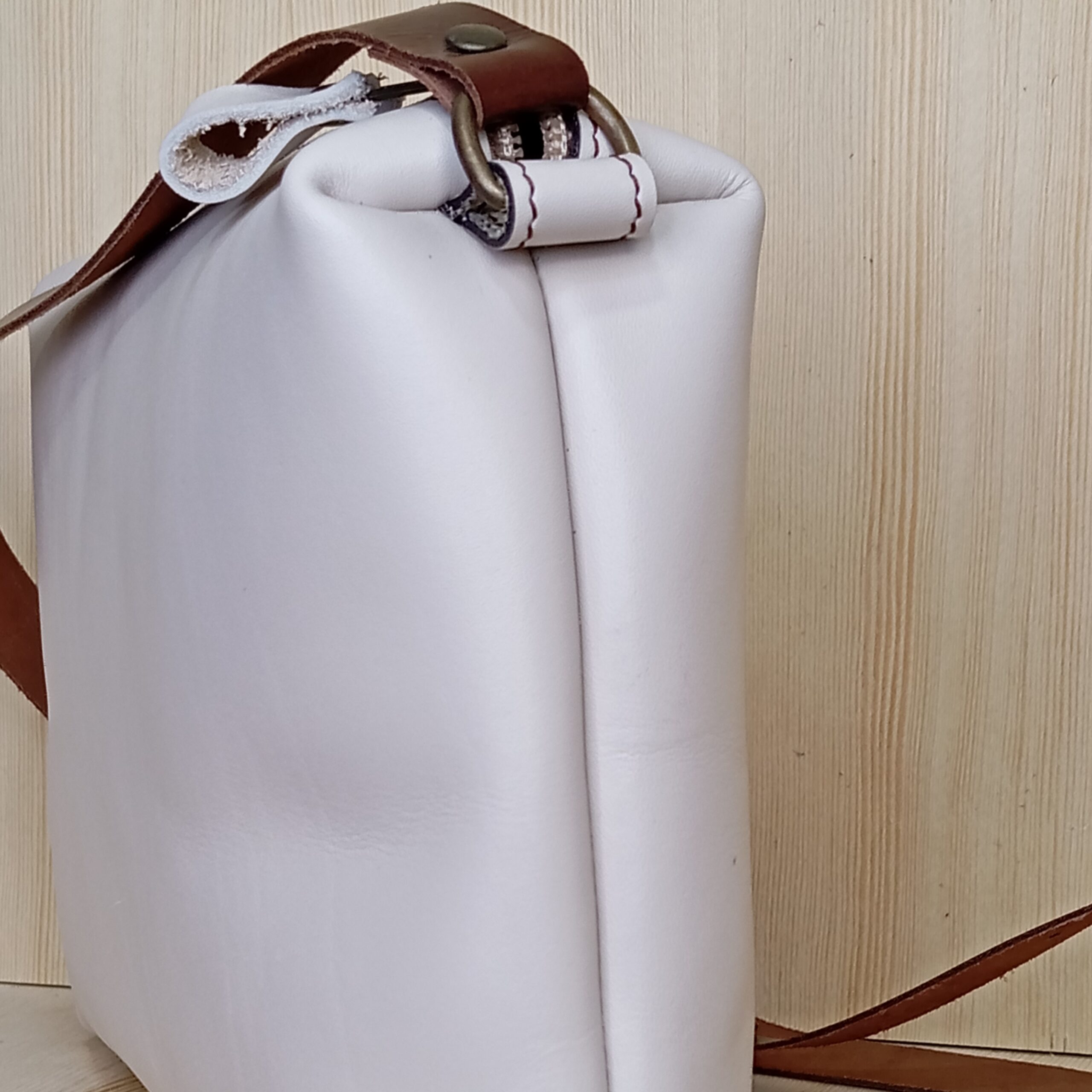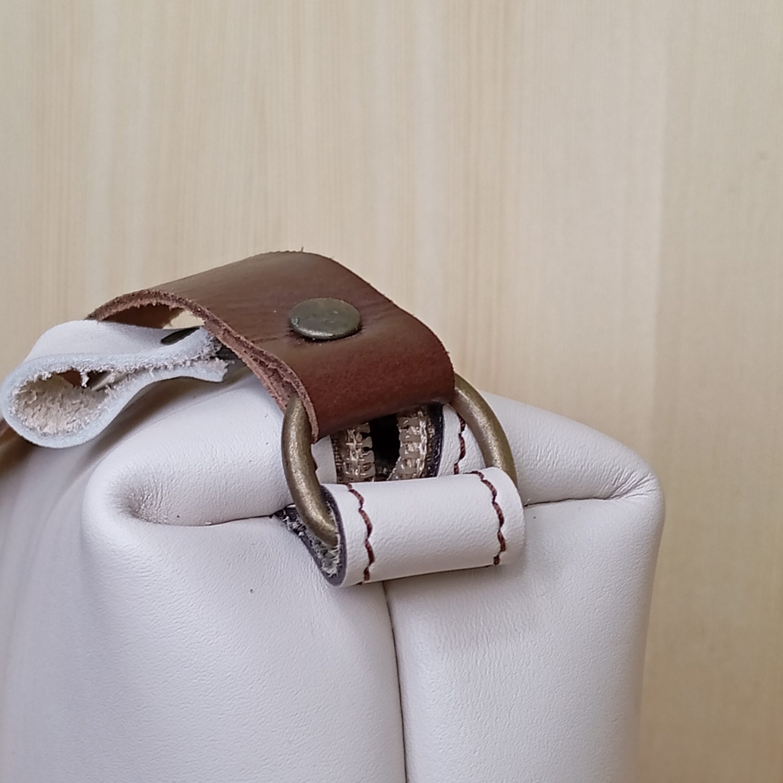 • Asa de piel de 110 cm aproximadamente que se regula mediante una hebilla.