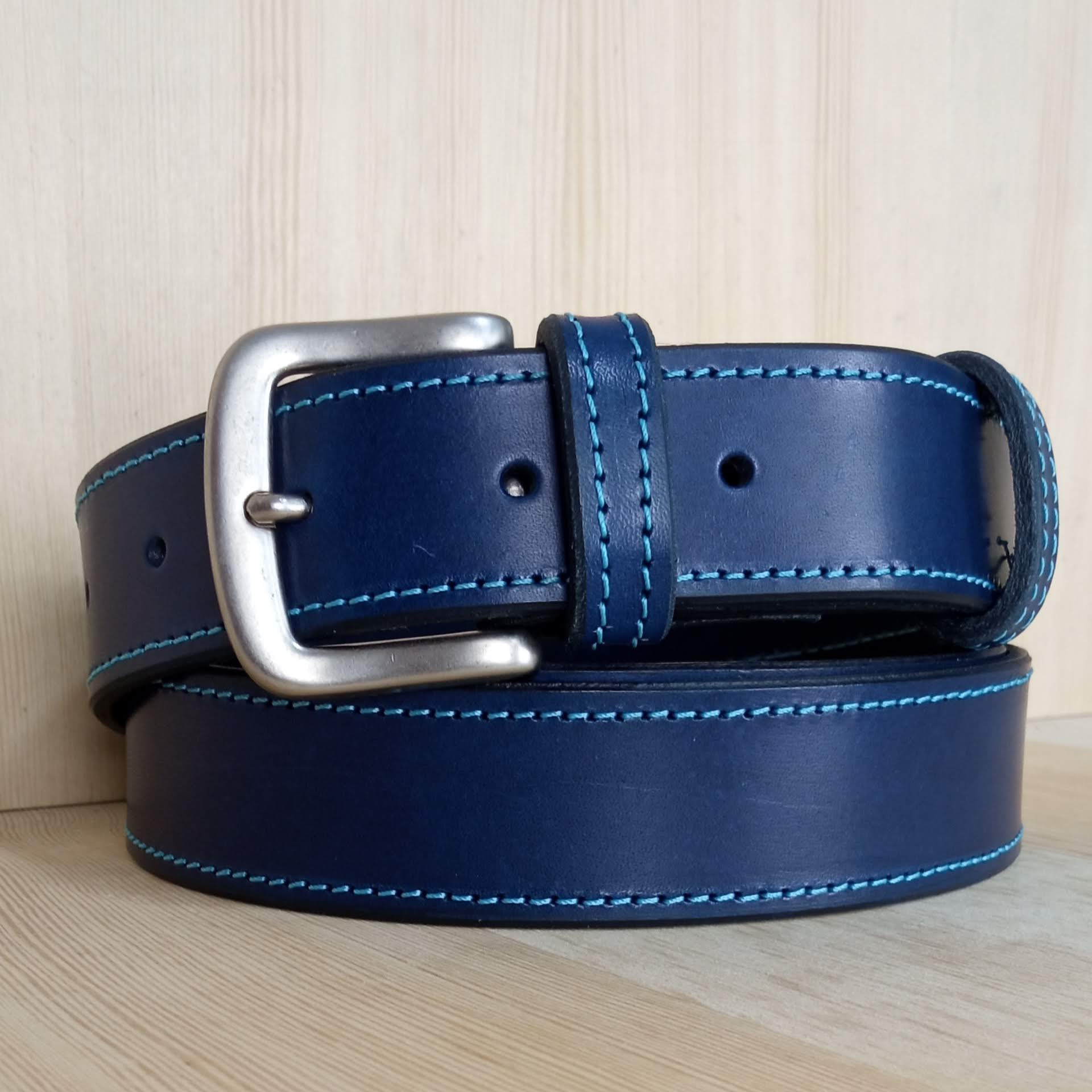Cinturón azul con costura
